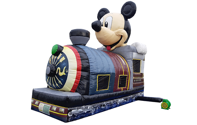 - Join the iconic Mickey Mouse on an unforgettable adventure! Our Mickey Mouse-themed inflatable brings the magic and joy of Disney to your event or party. With Mickey Mouse's cheerful smile and familiar red shorts, this inflatable captures the essence of the beloved character.